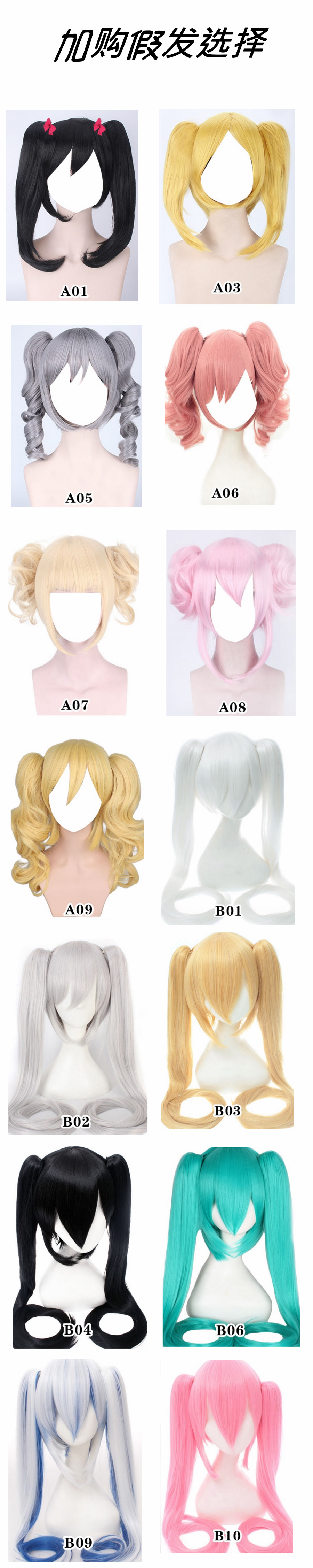1.尺寸選項中,可點選同照片所有配置(身型/眼珠/假髮/膚色)。